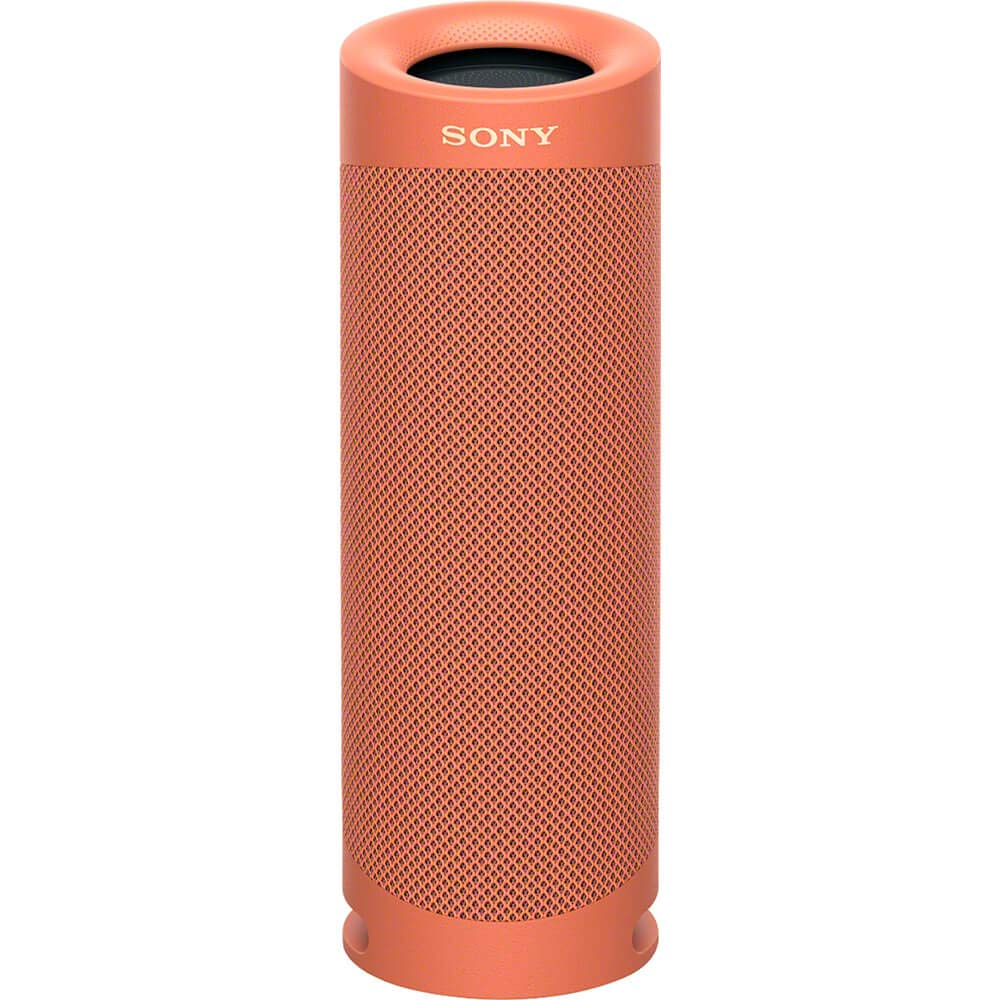 The Sony SRS-XB23 is designed for those who refuse to leave the music behind, no matter the environment. This lightweight, cylinder-shaped speaker measures about 3 inches in diameter and 9 inches tall, weighing just under a pound, making it incredibly easy to toss in a backpack or purse. Its vibrant Coral Red finish adds a pop of color, while the removable strap allows for hands-free carrying or hanging from branches, umbrellas, or bags.